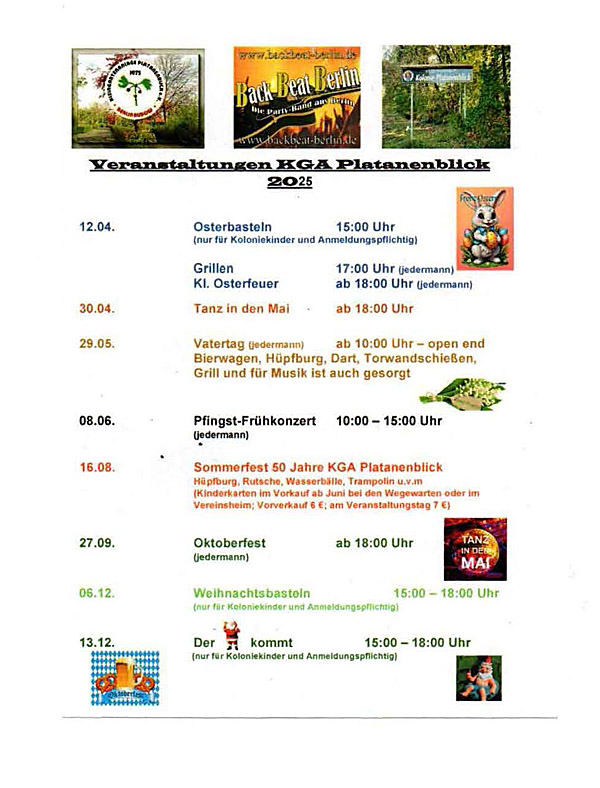 Veranstaltungen KGA Platanenblick 2025